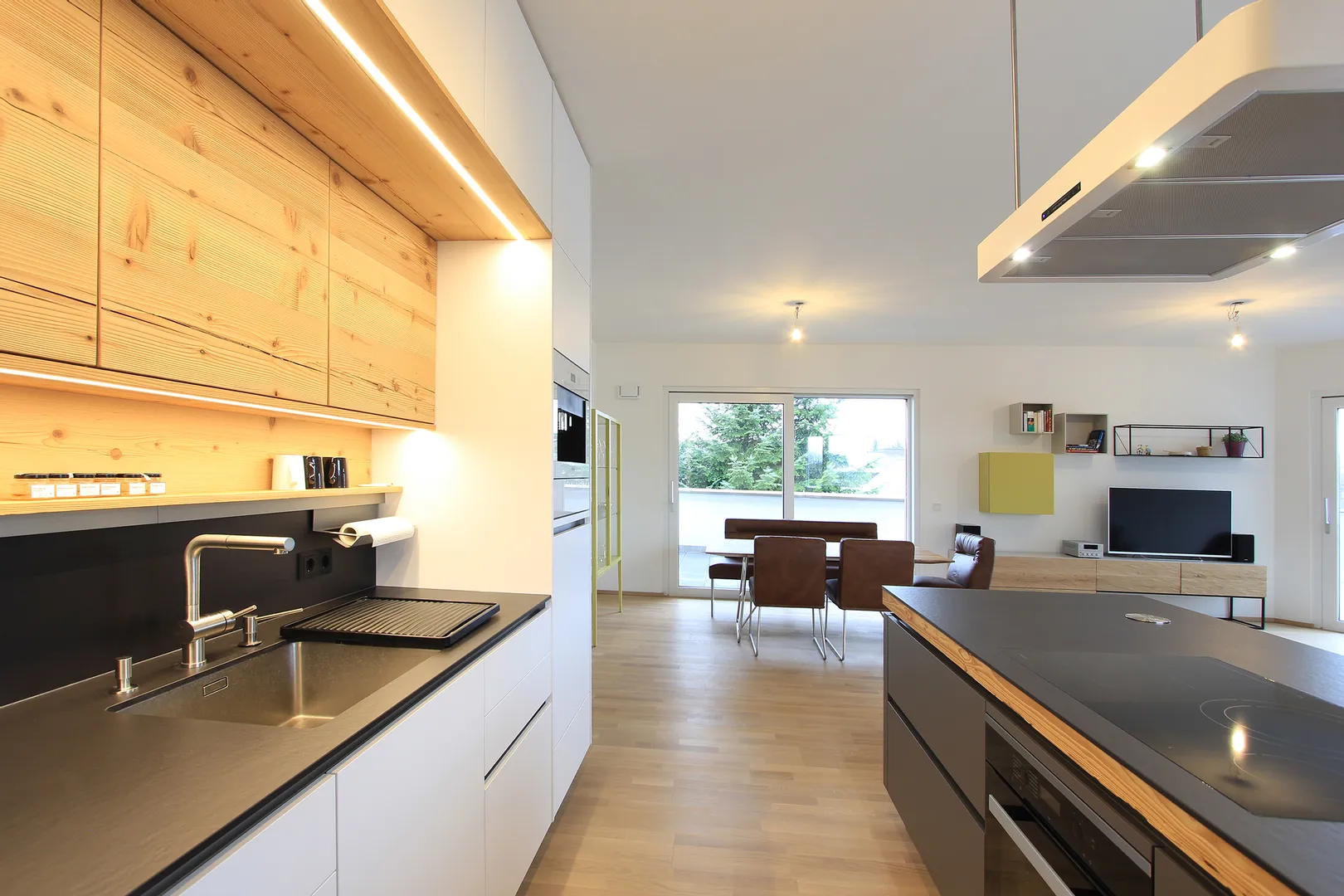 • Moderne Küchen kombiniert mit Holzelementen wirken besonders wohnlich