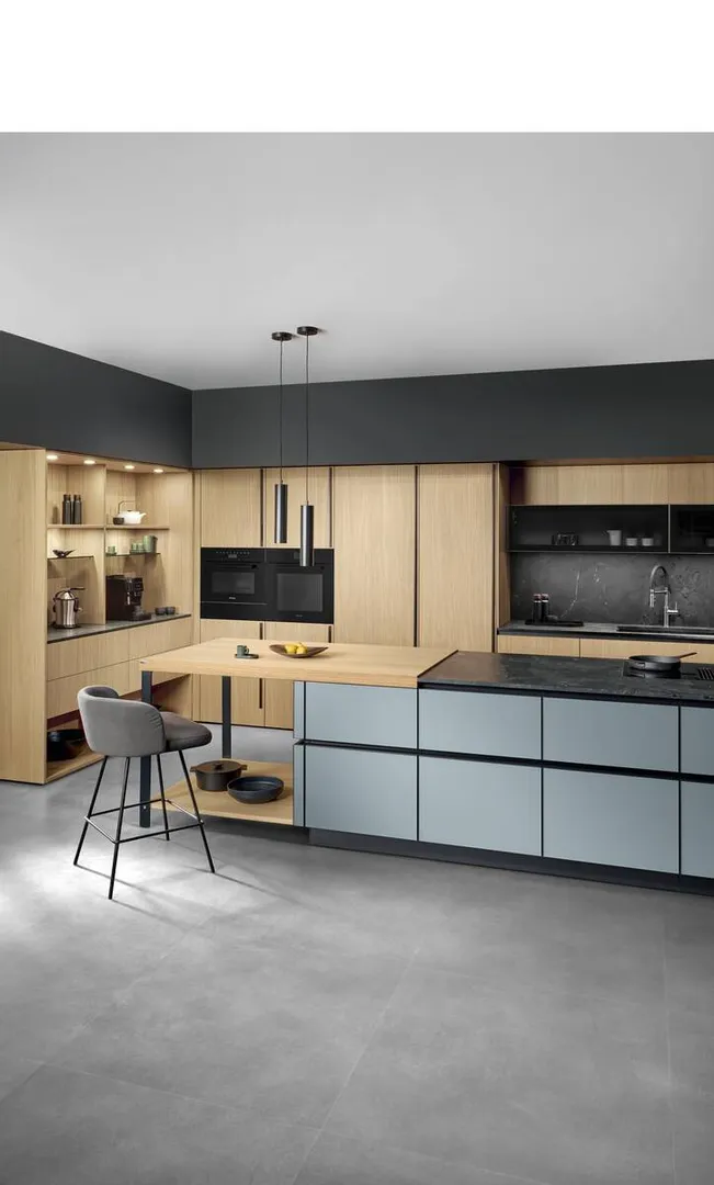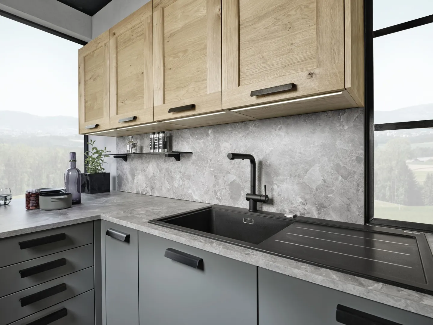 • Auch eine dünne Keramikplatte harmoniert perfekt mit Holz und verleiht der Küche Eleganz