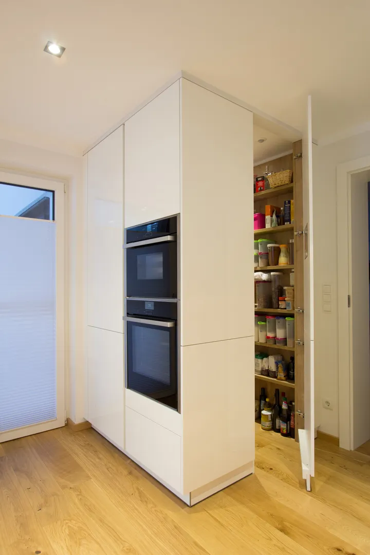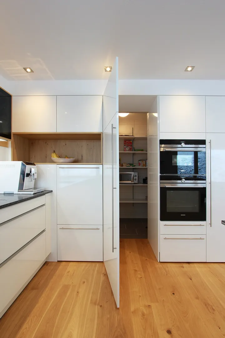 Die versteckte Speisekammer schafft nicht nur viel Stauraum sondern sorgt auch für Ordnung in der Küche. Wir planen die verstecke “Speis” seit Jahren und unsere Kunden sind sehr zufrieden damit. Nicht nur bei großen, sondern auch bei kleinen Küchen gibt es eine Möglichkeit eine Speis einzuplanen.