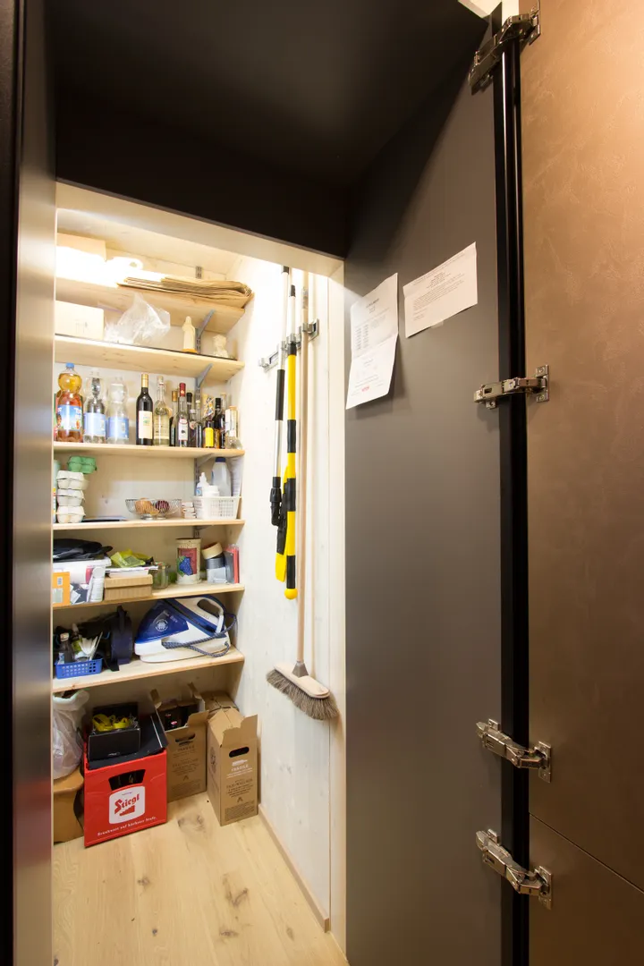 • Der größte Vorteil der versteckten “Speis” ist, dass damit viel Stauraum für Lebensmittelvorräte geschaffen wird.