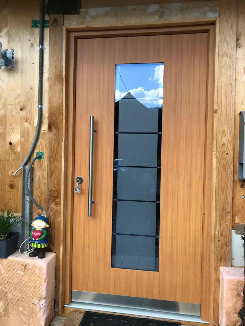 Passend zu der gemütlichen Einrichtung haben wir die Innentüren und Holz-Haustüre in Asteiche geliefert. Haustüren fertigen wir entweder in unserer Tischlerei nach Maß oder gerne planen wir eine Haustüre von unserem Lieferanten Gaulhofer.