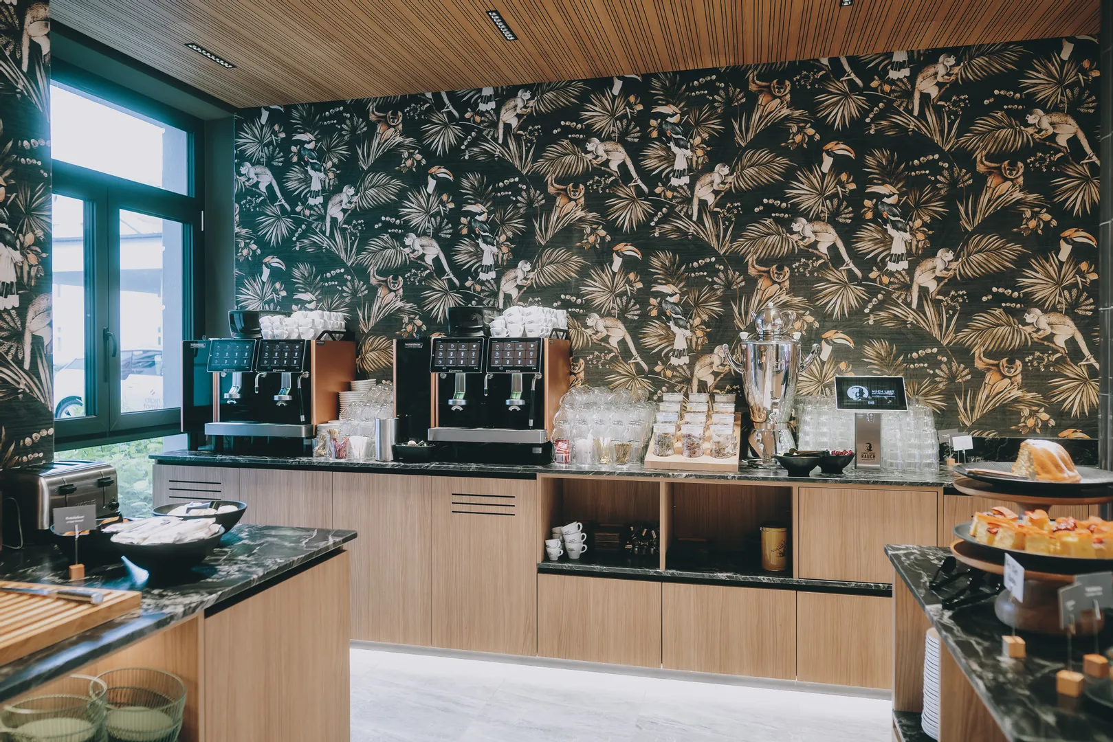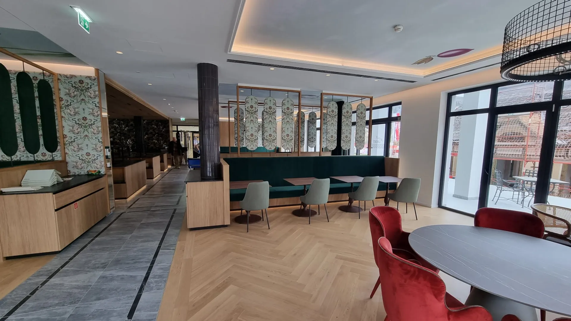 • Restauranteinrichtung mit gemütlichen Sitzbänken, edlen Wandverkleidungen, Buffet-Bereich & Raumteilern