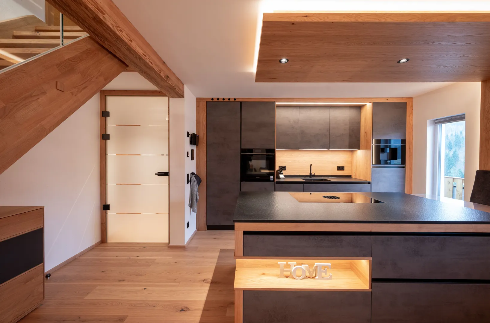 • Wir durften die ganze Einrichtung liefern, Boden, Innentüren, Küche, Essgruppe und einiges mehr.