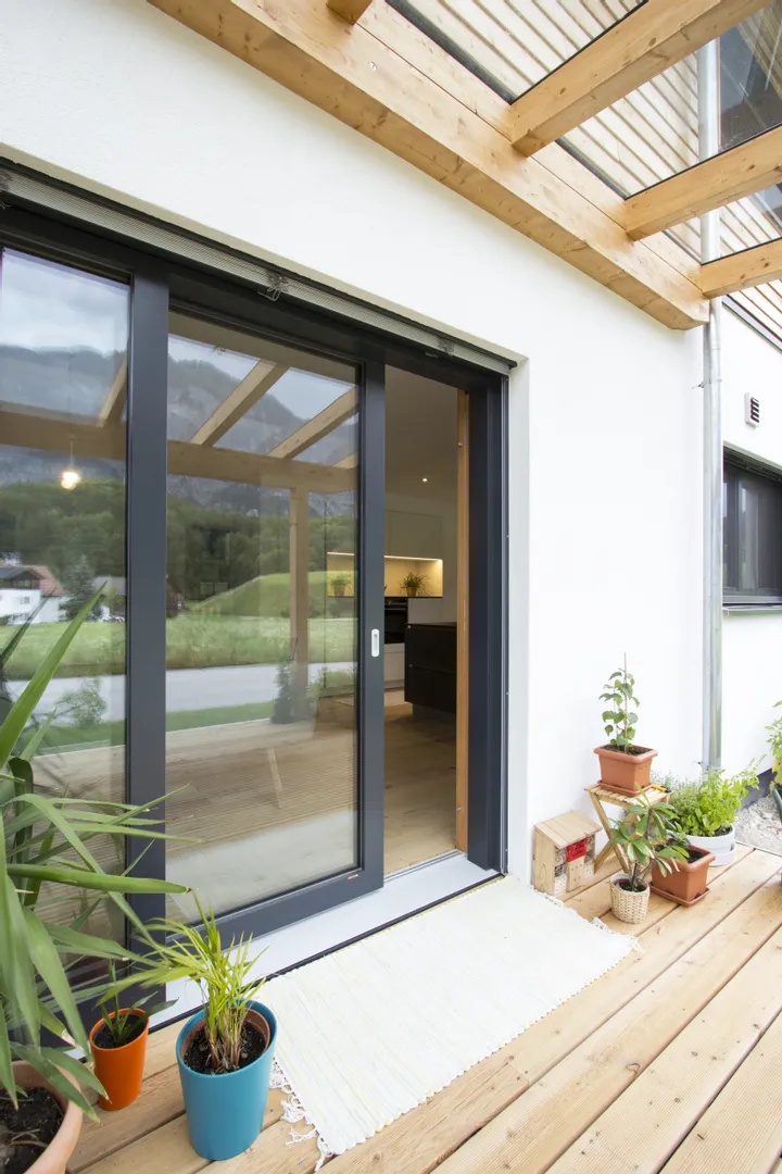• Gaulhofer Hebeschiebetür mit direktem Zugang von der Küche auf die Terrasse