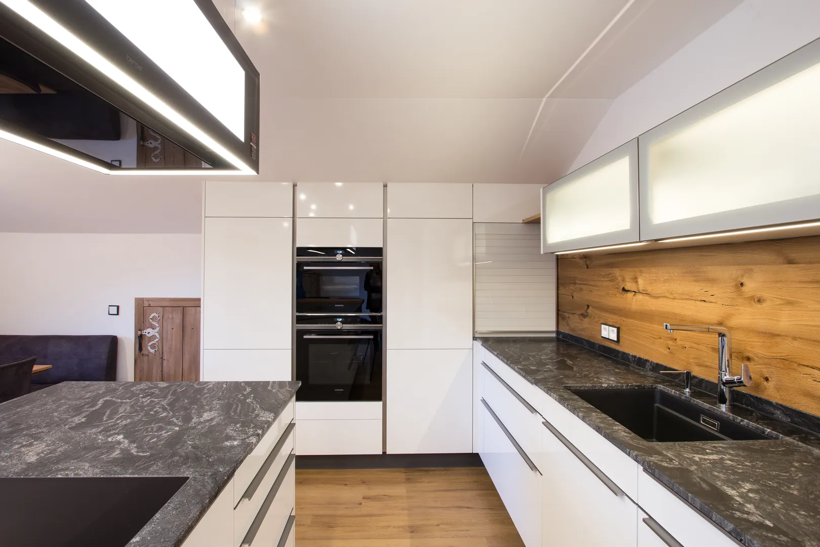 • Gemütliche Küche mit Holz und modernen Gestaltungselementen. Wir freuen uns besonders, dass sich unsere Kunden für die Steinplatte "Black Skorpion" entschieden haben, die die Küche elegant in Szene setzt.