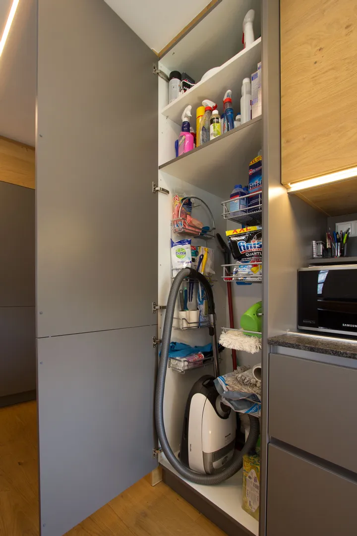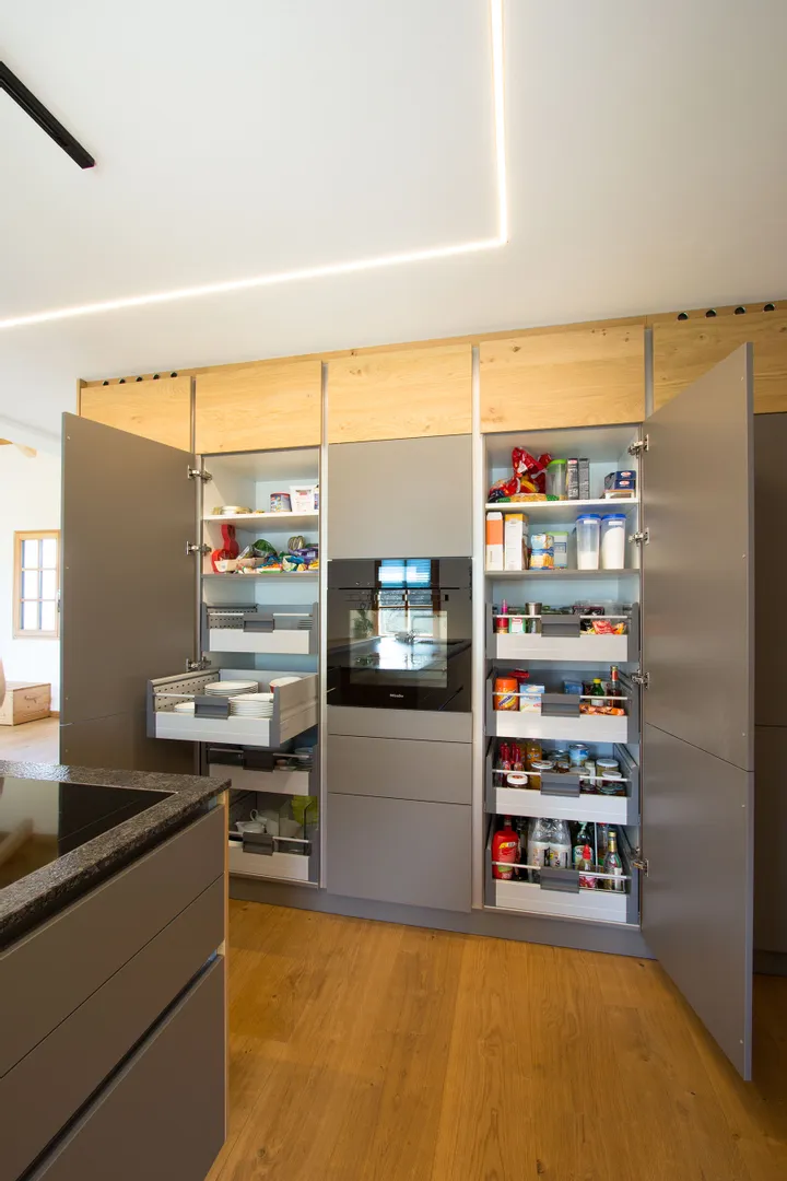 • Um den Stauraum bei der Kücheninsel nützen zu können, haben wir praktische Schiebetüren eingeplant.