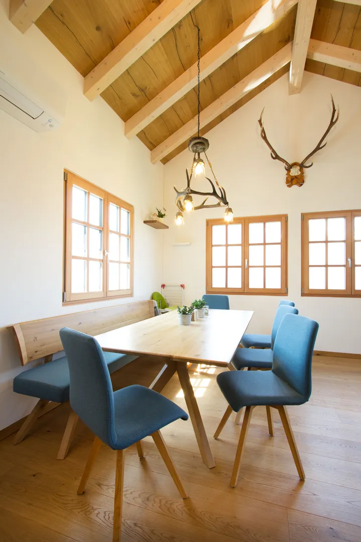 Gemütliches Esszimmer mit Sichtdachstuhl