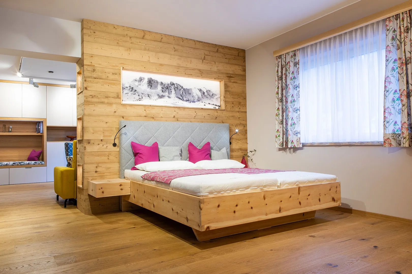 Zirbenholz ist seit Jahrhunderten für seine positiven Eigenschaften bekannt. Der angenehme Duft sorgt für ein entspanntes Raumklima und macht das Schlafzimmer zu einem echten Rückzugsort. In Verbindung mit einem Kopfteil aus hochwertigem Lodenstoff entsteht ein Bett, das nicht nur gesundes Schlafen unterstützt, sondern auch optisch ein starkes Statement setzt.