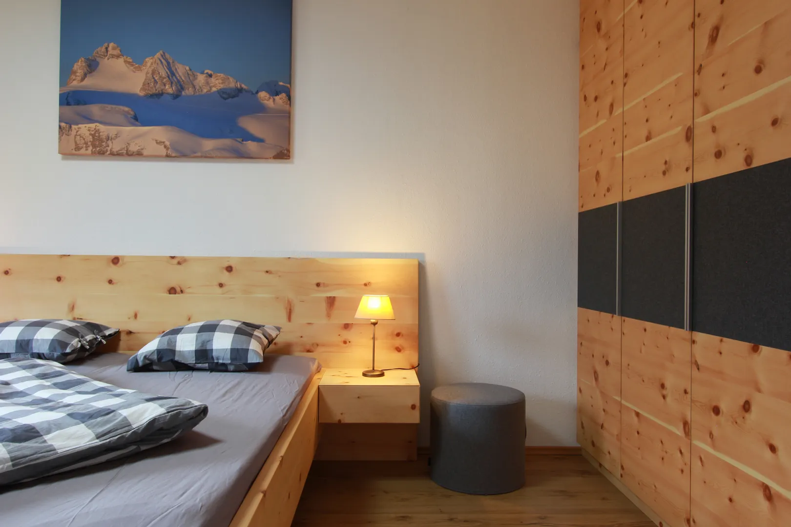 In Gosau haben wir ein modernes Zirbenschlafzimmer eingerichtet, das wir in unserer Tischlerei nach Maß gefertigt haben.